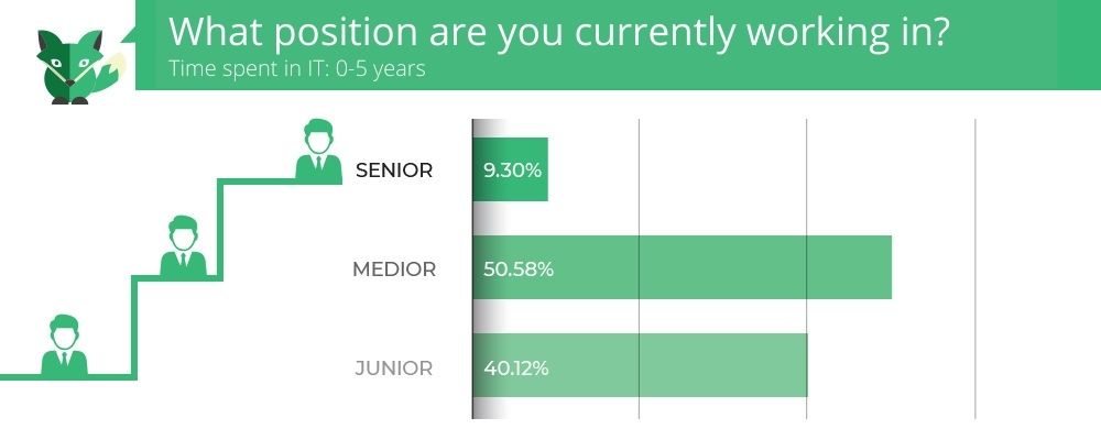 Those entering the IT sector are advancing at a fast pace in their careers after completing a bootcamp, our survey shows. Most students who have successfully completed a bootcamp, are already in a mid-level position after their second year in the IT profession, reaching a senior position with 3-5 years of experience.